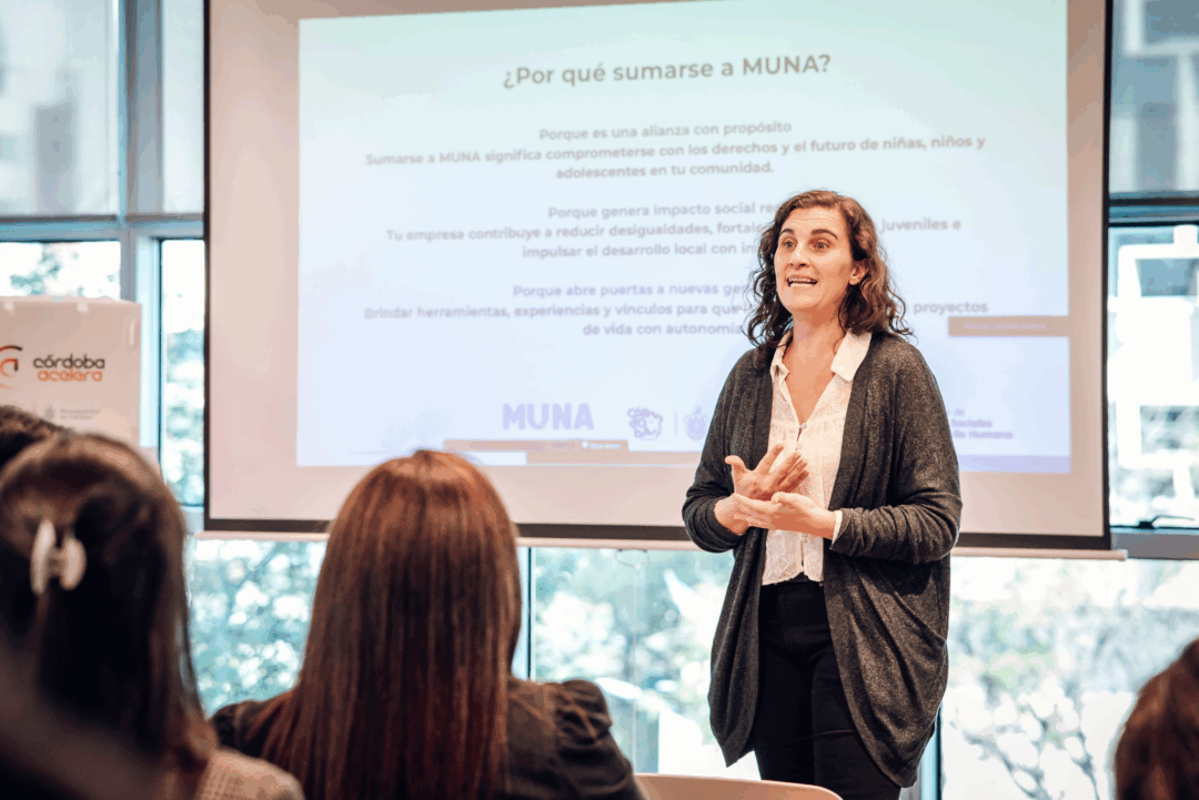En la ciudad de Córdoba, MUNA se ejecuta con distintas líneas de acción. Una de ellas es Oportunidades Únicas, que articula el trabajo entre el sector privado, instituciones educativas y juventudes para promover herramientas de inserción laboral, formación y autonomía.